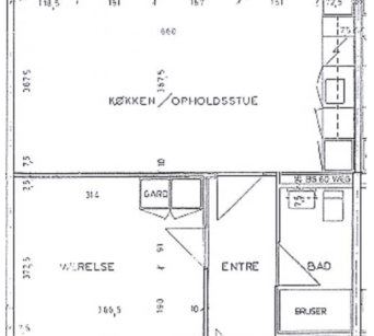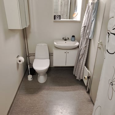 Apartment type 1: You move in alone. Here you share the kitchen, bathroom and hallway with another person. Moving in requires that you are studying. (Apartment type I is shown on the floor plan).