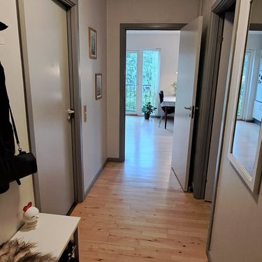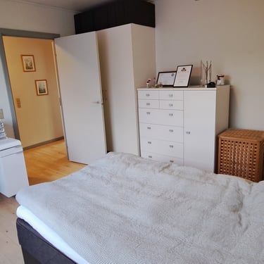 Apartment type 2: You move in as a couple. Here, you have a combined kitchen and living room and a separate bedroom and bathroom. Moving in requires that at least one of you is studying. It is possible to sign up for a shared apartment as a single person as well, however, preference is given to 2-person applications. (Apartment type II is shown on the floor plan).